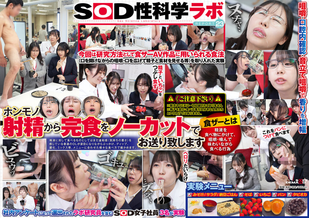 【1sdjs00359】「ザーメンと最も相性の良い食べ物は何か?」をSOD女子社員3名が真面目に検証してみた結果 計46食の濃厚ホンモノ精子でお腹いっぱい 咀嚼でじっくり味わいごっくん飲み込むザ~汁マリアージュ食ザー実験 SOD性科学ラボ REPORT23の無料エロ動画